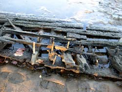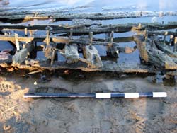 periodically exposed to the drying effects of the air. But the bottom of the hull remains buried in the sediments